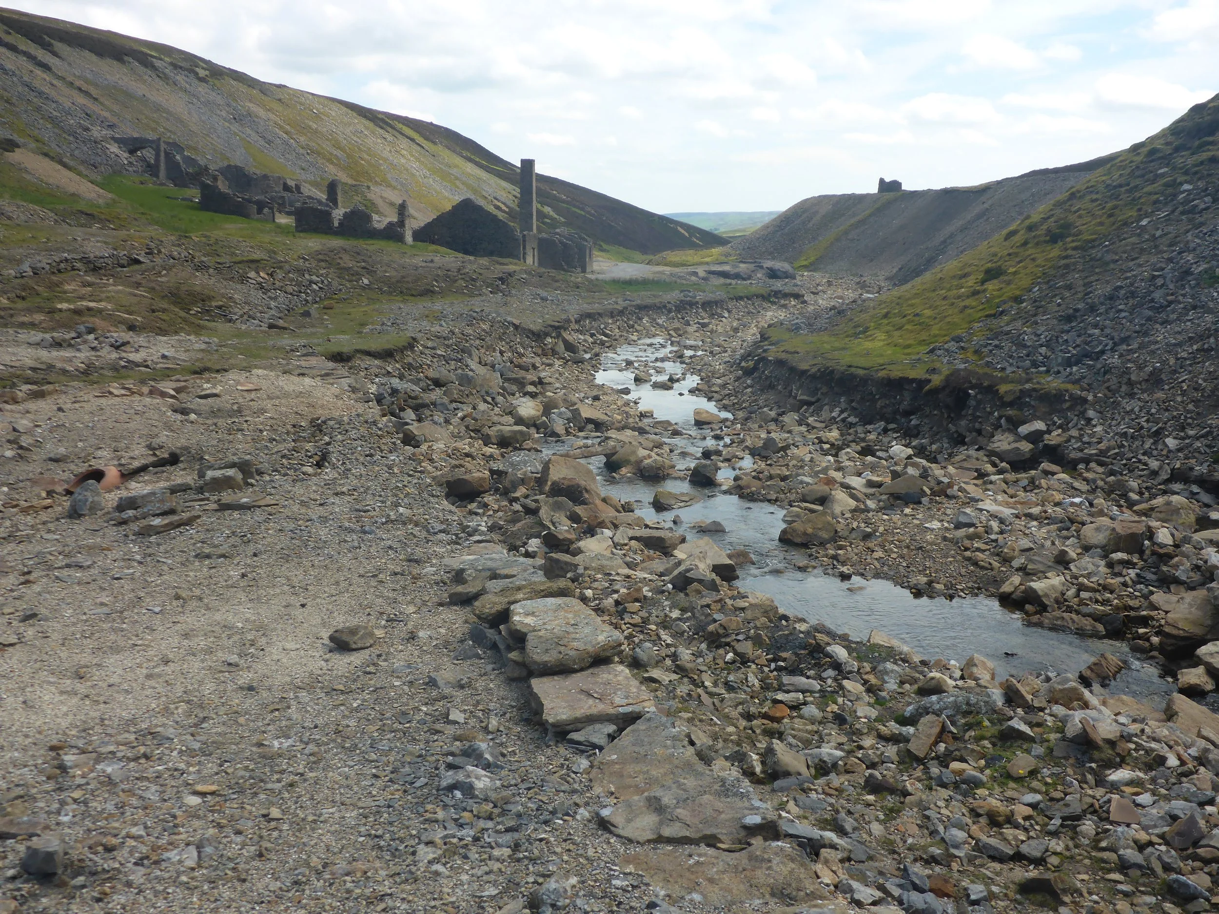 Bank erosion and evidence for sediment transport at Old Gang mine, shortly after the July 2019 flash flood.
